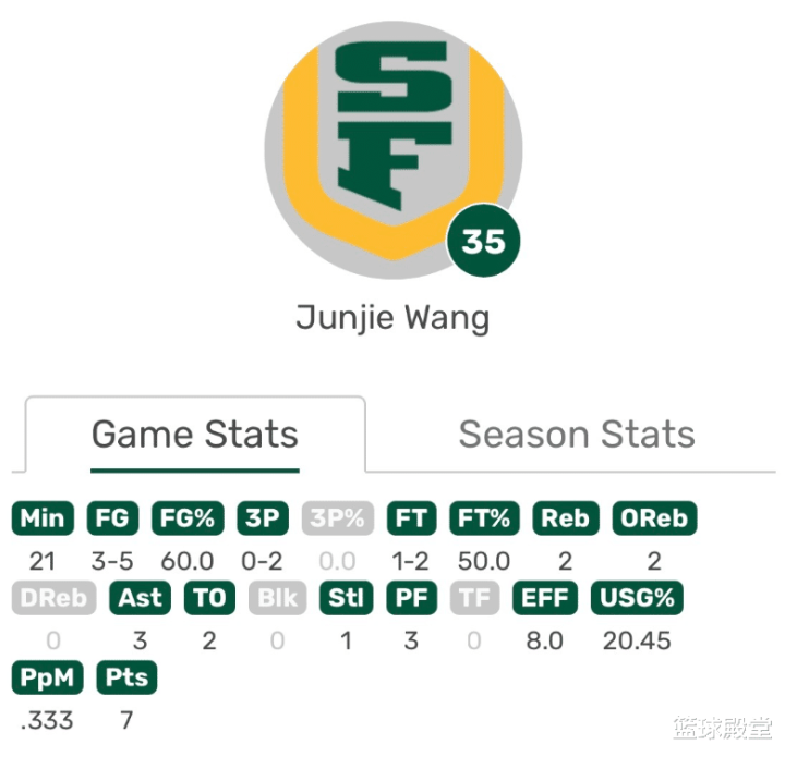 NCAA常规赛,旧金山大学92-79战胜圣地亚哥大学。这场比赛旧金山打得确实可以,因为对手的实力不是很强,他们早早就拉开分差了。只是王俊杰这场比赛在上半场7分2前板3助攻1抢断,攻守的发挥都非常完美,奈何下半场打了四分钟就被DNP了,最终造成他全场21分钟,投篮5投3中,罚球2中1,得到7分2篮板3助攻1抢断,这样的地位就很让人无奈。